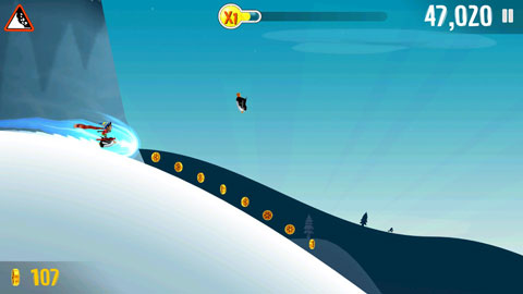 在游戏中,不仅可以挑战夺命竞速,还可以滑动屏幕作出特技动作!根据单、双板和坐骑的不同,特技动作也会发生改变!向前、向后、向上、向下赶紧试试吧!