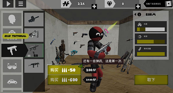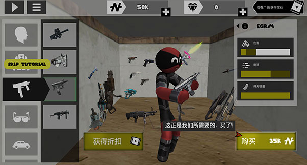 火柴人绳索英雄内置MOD菜单版怎么购买武器