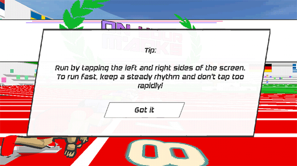 3、通过点击屏幕左侧和右侧来让人物奔跑起来,想要跑得块,需要保持稳定的点击节奏