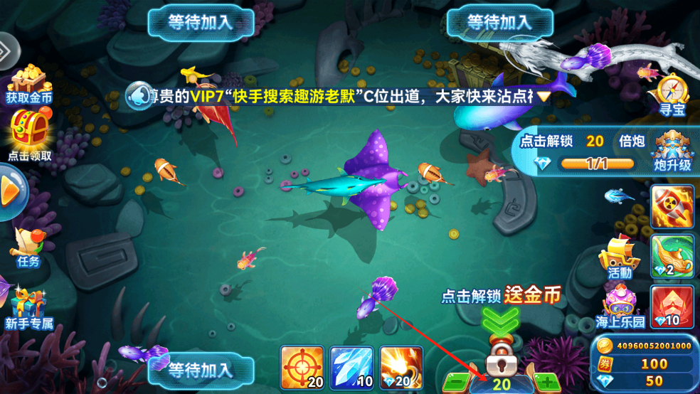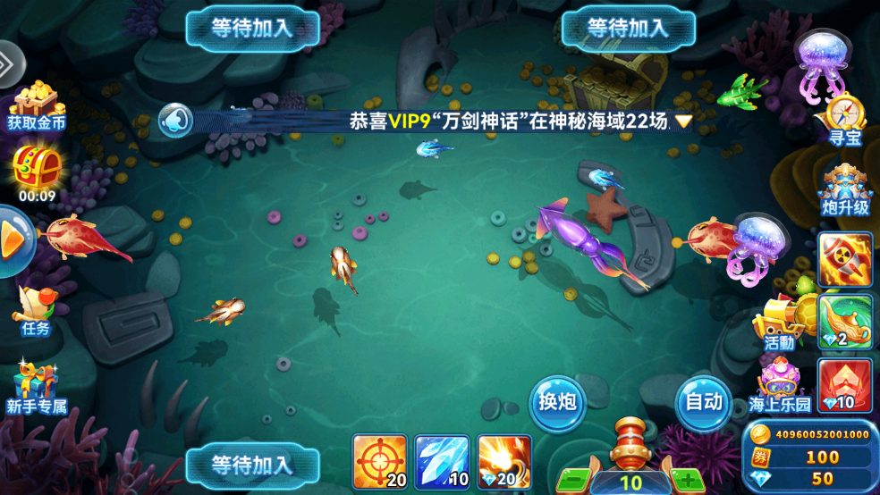 5、支持百人同屏实时联网对战,打造沉浸式捕鱼盛宴,更有特色玩法模式与每日登录福利等待探索。