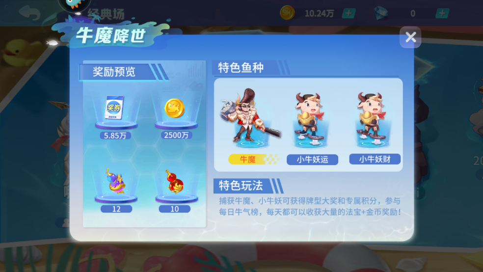 特色鱼种:牛魔、小牛妖运、小牛妖财