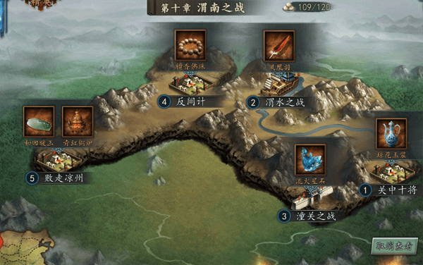 每个章节下各有5个关卡,每个关卡根据通关后武将的存活情况会获得1-3星的评价,当各位主公获得6星、9星、15星时,都可以领取到由水镜先生提供的宝箱奖励。