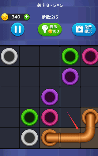 2、每个难关都有不同的规律、掌握好规则来通关吧,玩家还能仔细的钻研水管道路