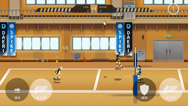 5、发球也有一定的技巧,长按发球键是平发球,长按扣球键再按翅膀键则是跳发球,玩家可以根据站位进行选择,可玩性很强;