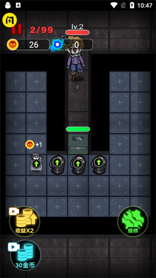 1、游戏操作简单易懂,核心玩法是通过升级道具和建造各类炮塔,抵御猛鬼的进攻。