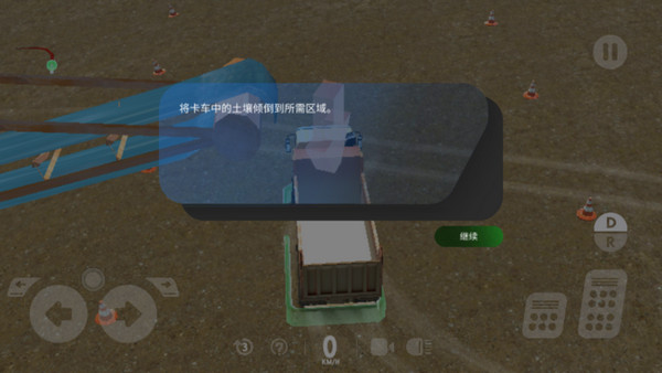 9、此时会出现倾倒泥土的轮盘,我们可以自由操作上下倾倒卡车斗子