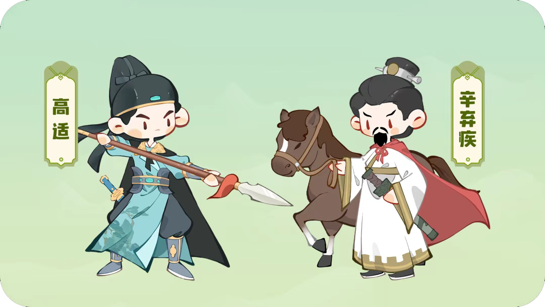 高适的主动技能[别董大]能对敌方造成一定伤害,还能提高主角的连击属性,并且被动技能还能强化名士,再搭配辛弃疾的名士技能对敌方打出伤害,并且被动技能效果还可以在开场提高主角较为稀有的(奋起)属性,大大增加了连击流派的输出伤害!