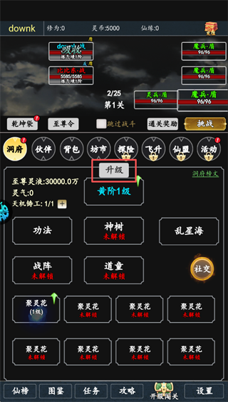 可对功法、神树、战阵等功能进行升级可提升角色的整体实力