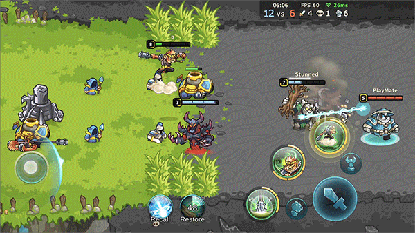 2、玩法采用横向单路推塔机制,玩家需一路推进,摧毁敌方基地以取得胜利。