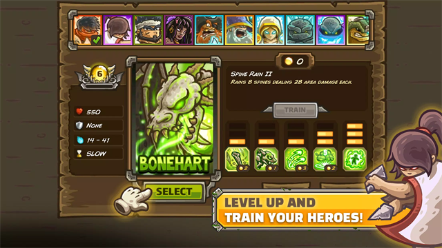 3、【多难度关卡与成长系统】设计17个主线关卡,每关包含普通/英雄/铁人三种模式。通关获天赋点可强化建筑与技能,支持随时重置加点方案。