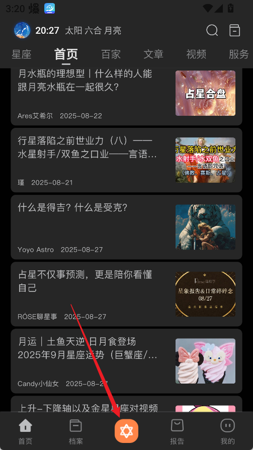 2、或者进入星盘档案页面(前提你要先有爱星盘的账号并完成登录),点击星盘条目即可进入