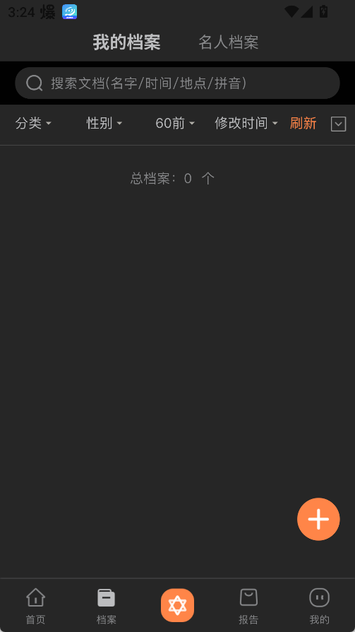 点击App底部导航“档案”即可进入星盘档案管理页面,如果你还没有登录,请先登录