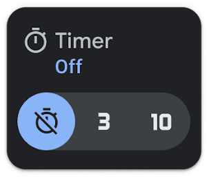 点击“设置”,在“定时器”屏幕上,点按“关闭”倒 计时 器、“3 秒”或“10 秒” 。