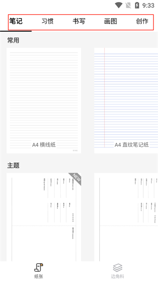 提供多种专业笔记模板:横线纸、直纹笔记纸、摘抄笔记纸、读书笔记纸、读书进度纸、会议记录纸,以及埃森哲、麦肯锡、康奈尔(直线/网格)、子弹笔记Key纸等高效工具。