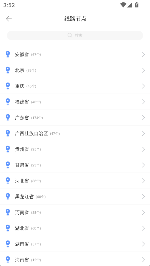 3、在选择具体IP时,系统会展示各个城市的线路信号情况和编号。建议选择一个信号更稳定的线路,点击即可完成切换。