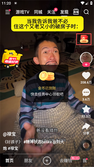快手短视频和快手的差别最大的就是能赚钱了,在页面的右下角有一个红包的记录器,每当刷视频的时候就能够看到进度在慢慢的填满。