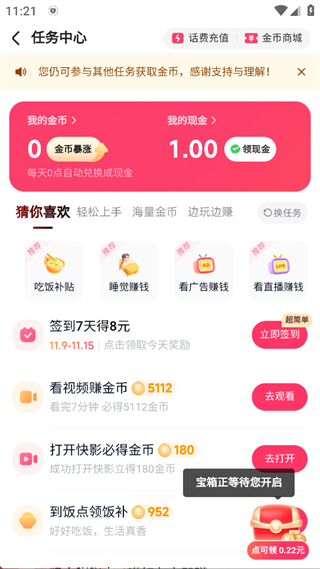 3、用户每日刷视频即可自动获得金币奖励,轻松娱乐的同时还能积攒收益。