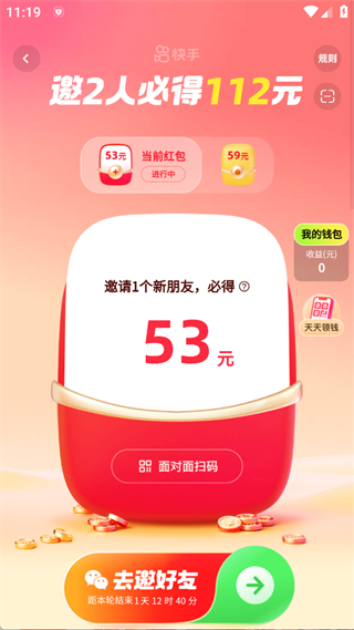 5、邀请好友领现金,成功邀请好友注册并使用快手极速版后,可获得现金奖励,邀请越多收益越高。