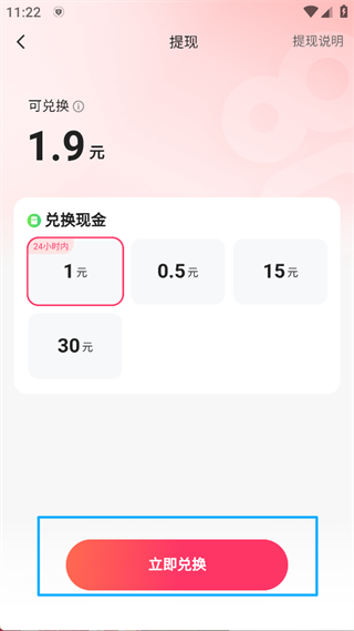 5、当金币数量达到提现标准时,只需选择金额并点击“提现”,即可快速到账,操作简单安全。