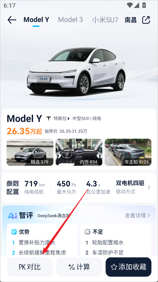 3、在详情页下方找到并点击【PK对比】按钮;