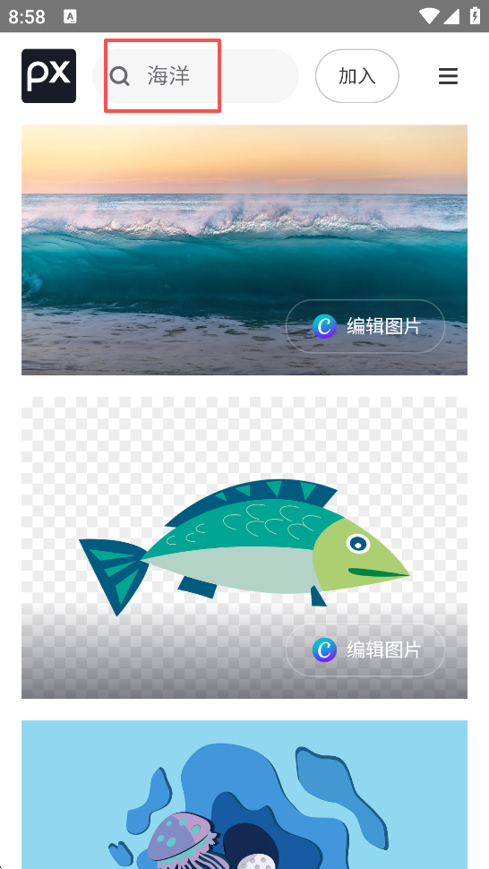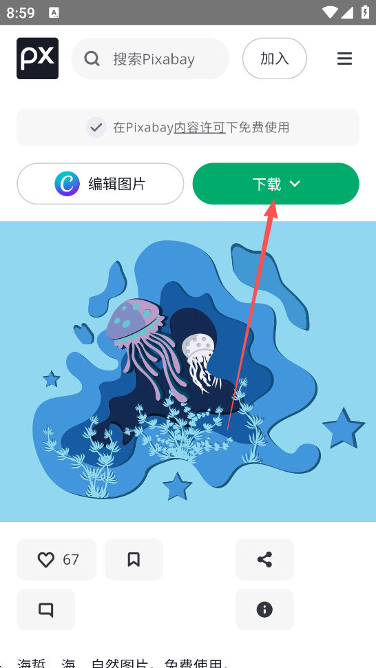 1、打开pixabay素材网App,搜索你需要的图片类型