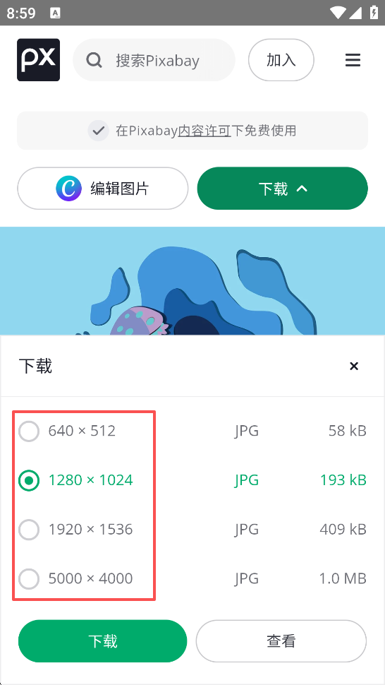 3、选择下载的图片尺寸下载即可