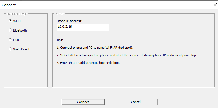 7、服务器成功启动后,将显示手机的IP地址(如“10.0.2.16”),该地址将用于后续客户端连接;