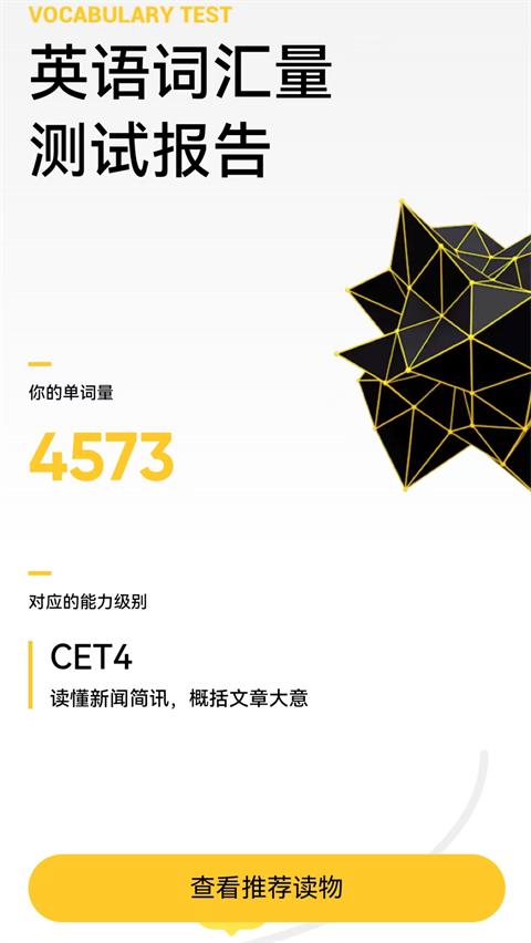 1、每篇文章阅读完成之后,会根据文章单词数据和您的阅读时间智能化分析您的英语阅读水平及智能化学习成果,同时获得阅读积分;