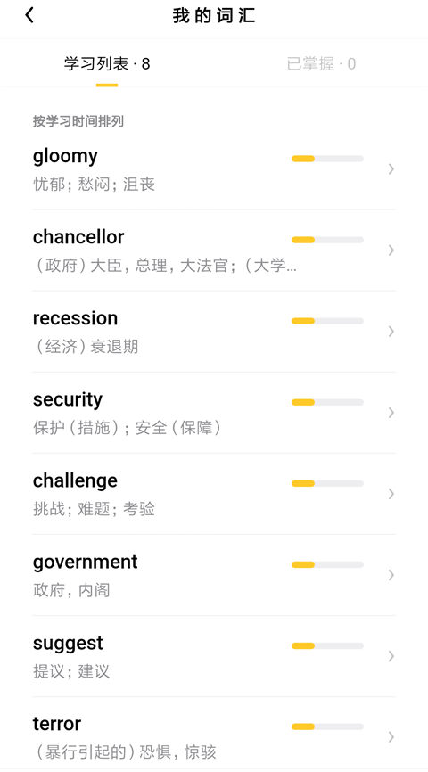 用户可以随时查看和管理自己的生词本,对已掌握的单词进行标记,或者对不熟悉的单词进行重复标注。