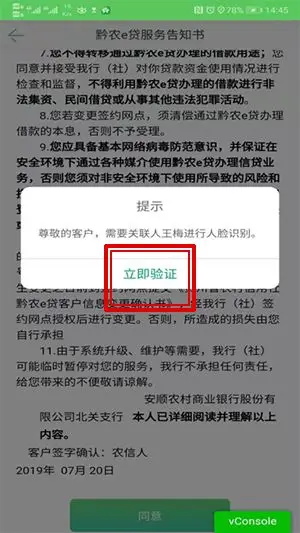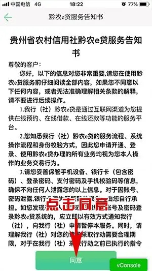 进入黔农e贷服务告知书:确认信息点击同意。