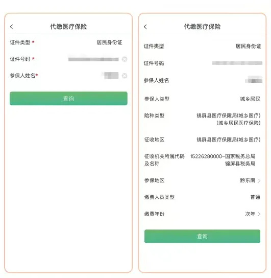 步骤三:输入参保个人相关信息后,点击“查询”,核对相关信息无误后,点击“查询”。